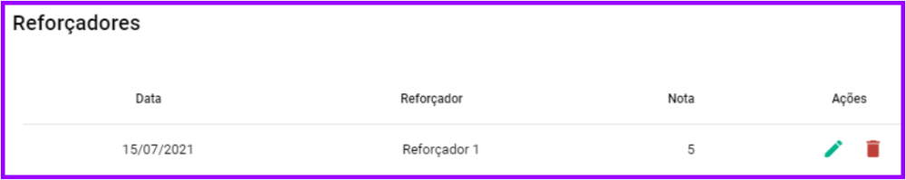 2. Ao adicionar um, ou mais, reforçadores, a plataforma monta uma lista logo acima: