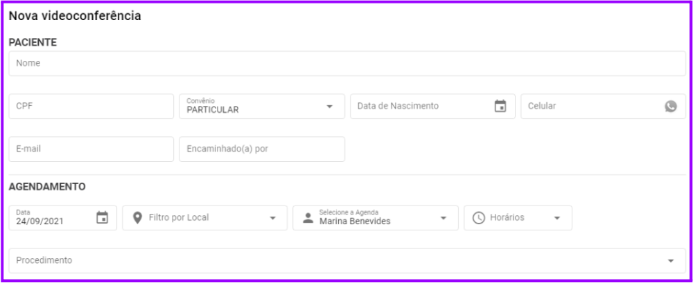 - Os campos “Nome”, CPF e Procedimentos são obrigatórios para a marcação de um agendamento.