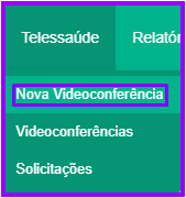 Para efetuar uma nova videoconferência para sua clínica, passe o mouse em “Telessaúde” nas abas acimas, e então clique em “Nova Videoconferência”. Novas videoconferência também podem serem marcadas diretamente na tela do dia em questão no “Calendário”: