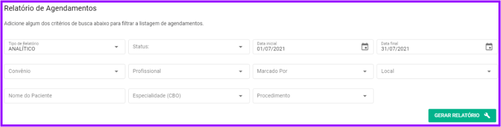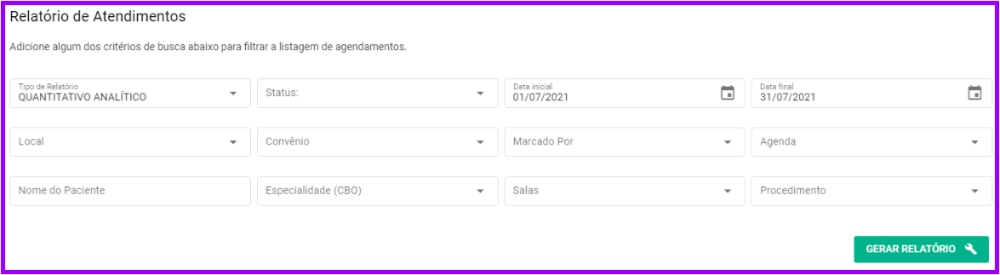 1. O primeiro relatório de agenda disponível para gerar é referente a atendimentos:
