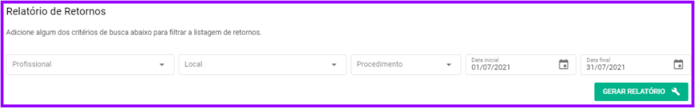 3. O terceiro relatório de agenda disponível para gerar é referente a retornos: