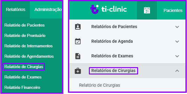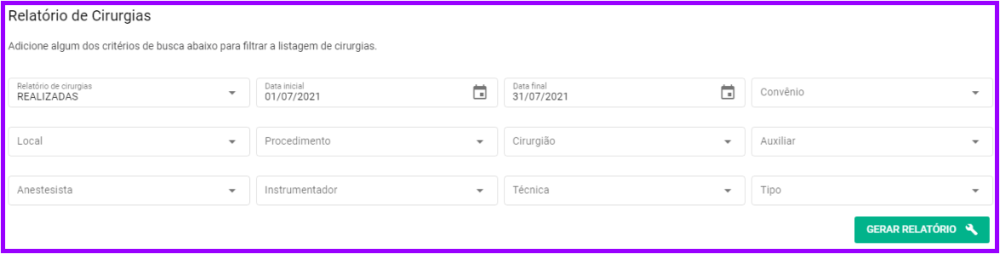 1. O único relatório de cirurgias disponível para gerar é referente às próprias cirurgias e seus detalhes: