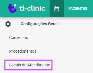 Para cadastrar seus locais de atendimento, selecione “Locais de Atendimento” na aba de configurações gerais: