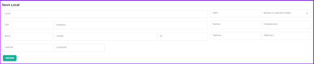 - Apenas o campo “Local” é obrigatório para a adição de um local de atendimento.
