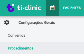 Para cadastrar os procedimentos executados em sua clínica, selecione “Procedimentos” na aba configurações gerais: