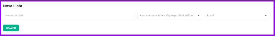 2. Preencha com nome da lista, associe tal lista a um profissional de saúde, ou todos, selecione o local: