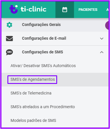 Para configurar o status de agendamento atrelado a um disparo de SMS, e seu conteúdo, selecione a aba “SMS de Agendamentos”: