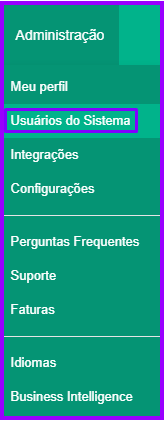 Para acessar e adicionar os usuários de sua clinica digital, clique em “Administração” e então em “Usuários do Sistema”. Também é possível acessar pelas Configurações Gerais: