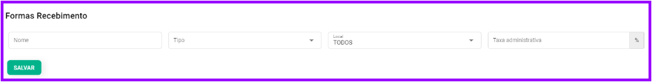 - Apenas o campo “Nome” e “Tipo” são obrigatórios para a adição de uma forma de pagamento.