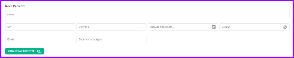 1. Preencha as informações obrigatórias para o cadastro de paciente, que foram configuradas aqui.