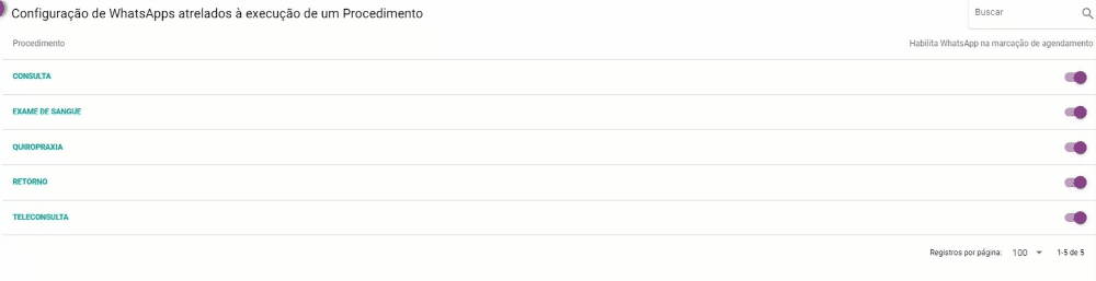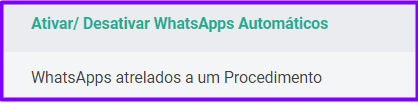 Nesta opção, é possível atrelar os disparos de Whatsapp aos procedimentos cadastrados.