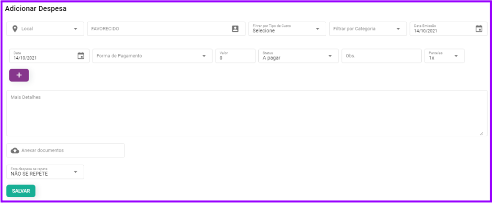 - Após adicionar todas as informações desejadas sobre a despesa, clique em