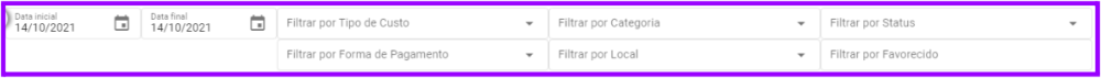 4. No topo da página estão presentes espaços para adicionar diferentes filtros para a lista de despesas: