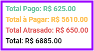 5. No canto inferior esquerdo da página fica um resumo do valores pagos, à pagar, e atrasado referente às despesas da lista. Exemplo:
