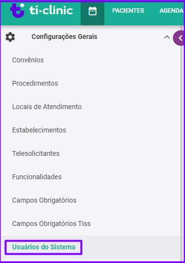 Além disso, nessa mesma tela, também é possível cadastrar novos usuários para a clínica. Caso o objetivo seja a criação de novos usuários do sistema ou configurações dos perfis dos usuários já cadastrados clique: