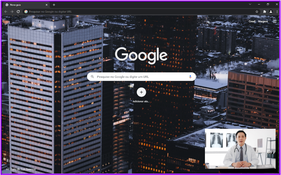 para ter a opção “Picture-in-Picture”, assim será apresentada uma imagem menor do profissional de saúde, no canto inferior esquerdo da tela, dando a possibilidade de navegar entre outras páginas sem perder a imagem do profissional. Ex: